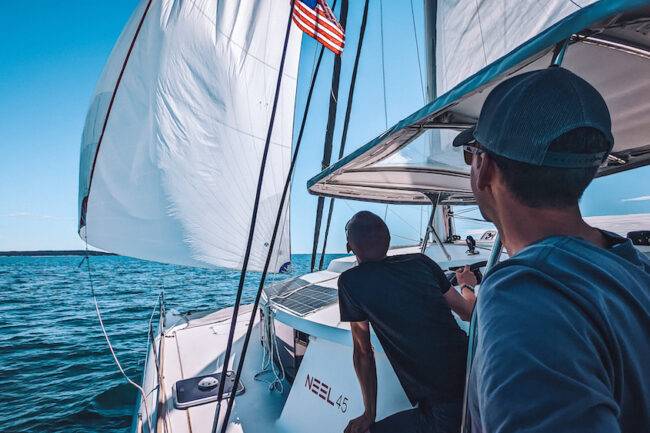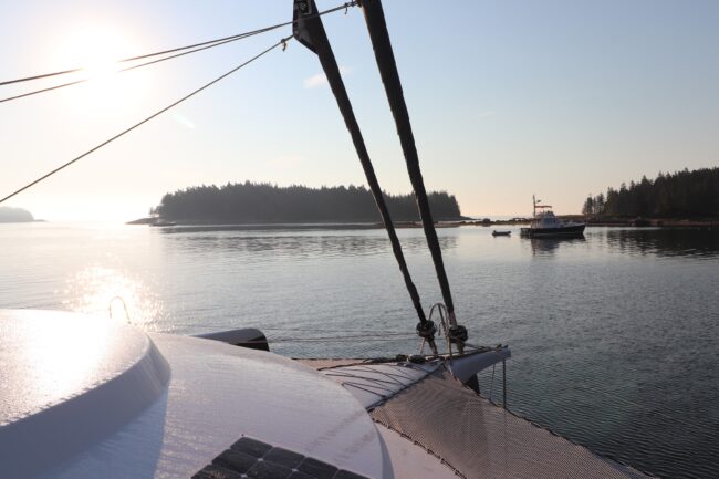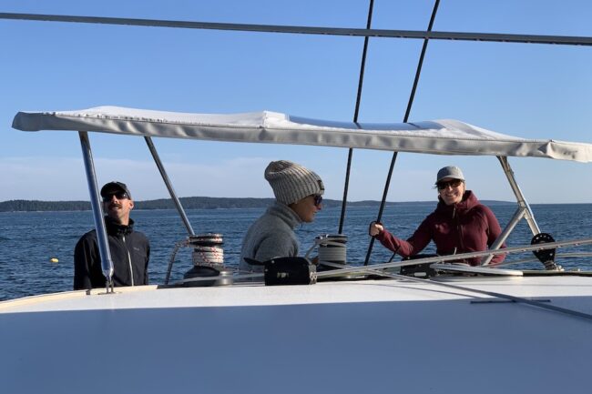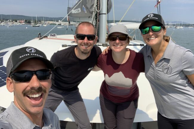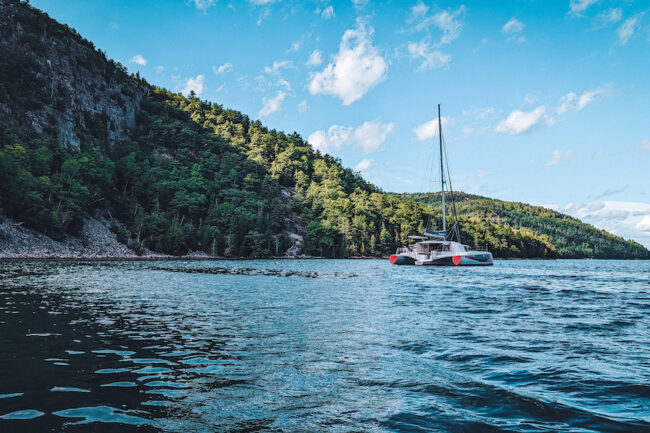 Outer Passage offers unique voyages aboard a performance multihull for those seeking experiences in offshore sailing and liveaboard cruising life. Not every trip is an offshore sailing endeavour, though. For example my partner Adam and I went sailing with Outer Passage in Maine, and it was such a delight island hopping in this beautiful region. It was an unforgettable blend of sailing, hiking, swimming and exploring. After having been boat shopping for months without any luck, it was the perfect (and much needed) reminder to keep going because adventures like this could be our everyday life, too.